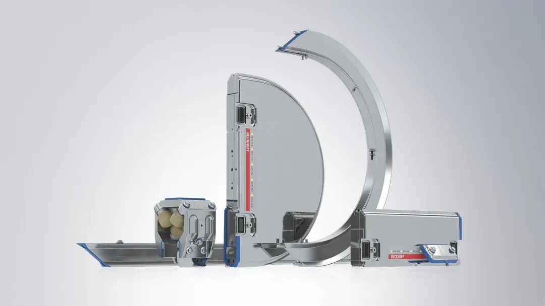 一套完整的模块化 XTS 系统由电机模块、导轨和动子,以及装有 TwinCAT 自动化软件的工业 PC 构成,可以根据具体的设备或系统布局进行调整。