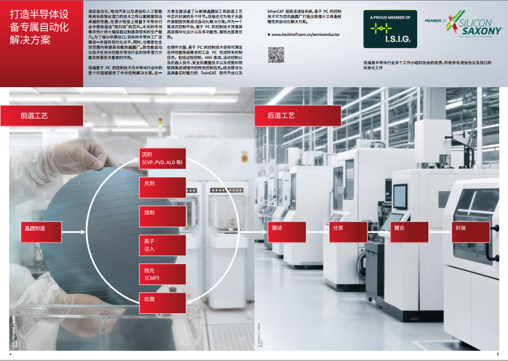 未来市场对 “高科技” 芯片的需求预计将远超制造商现有产能,而高性能自动化技术正是挖掘半导体行业效率潜力的关键所在。倍福基于 PC 的控制技术,可为半导体行业全流程自动化任务提供中央控制解决方案,覆盖从晶圆加工到芯片封装的前道、后道所有环节。目前,倍福最新《半导体设备打造专属的解决方案》已上线,欢迎下载了解更多技术细节。