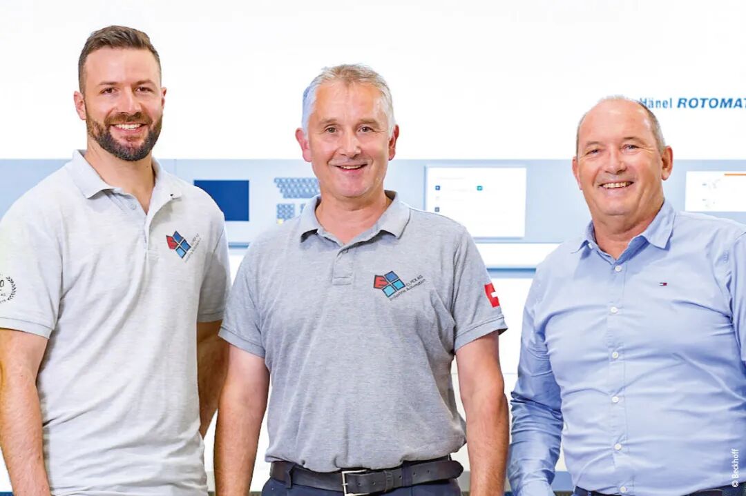软件团队负责人 Benjamin schwab、副总经理 UrsKrahenbūhl(均来自 Elpex)与倍福利萨赫办事处负责人 AndreasIsei(从左至右)