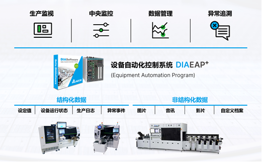 台达DIAEAP+设备自动化控制系统能够担任“中枢大脑”的角色,结合台达DIASECS标准通讯,统一管控全域设备,确保生产数据实时、准确上传,及配方的设备端下载。它能实时监控设备状态,减少人工干预与操作失误,推动产线运营迈向真正的透明化与智能化。