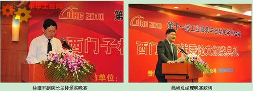 6月2日下午18:00,120名代表欢聚在上海光大国际大酒店光韵六号厅,在中国仪器仪表学会可靠性工程分会秘书长、上海仪器仪表自控系统检验测试所所长徐建平教授的主持下举行了隆重的颁奖典礼。西门子工厂自动化有限公司总经理姚峻先生和上海工业自动化仪表研究院党委书记兼副院长徐洪海教授先后致词,祝贺第十一届工业仪表与自动化学术会议圆满成功,上海工业自动化仪表研究院院长孙叔平教授与姚峻总经理一起为获得“第十一届工业仪表与自动化学术会议西门子杯优秀论文”的8位论文作者颁发了奖杯和证书。
