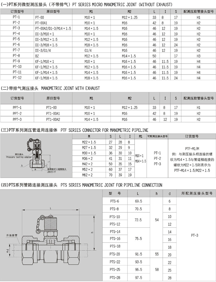 £¨Ò»£©PTϵÁÐ΢ÐͲâѹ½ÓÍ·£¨²»´øÅÅÆø£©£º