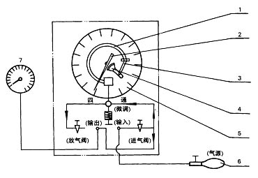 ÒDZíÓÉÍâ½ÓÆøÔ´£¨»òÒ½ÓüÓѹÇò£©¹©Ñ¹£¬Í¨¹ýÊäÈë½Ó¾×£¬½øÆø·§°Ñ¿ÕÆøÑ¹Á¦Í¬Ê±ÊäÈë±»¼ìÒDZíºÍ±¾ÒDZíµÄµ¯ÐÔÔª¼þÄÚ£¬µ¯ÐÔÔª¼þÔÚ¿ÕÆøÑ¹Á¦×÷ÓÃÏ£¬Æä×ÔÓɶ˲úÉúÎ»ÒÆ£¬´ËÎ»ÒÆÍ¨¹ýÁ¬¸Ë¼°³ÝÂÖ´«¶¯»ú¹¹½øÐзŴó£¬ÓÉÖ¸Õ뽫±»²âѹÁ¦ÔÚ±íÅÌÉÏָʾ³öÀ´£¬²¢¶Ô±»¼ìÒDZíµÄָʾֵ½øÐмìÑé¡£