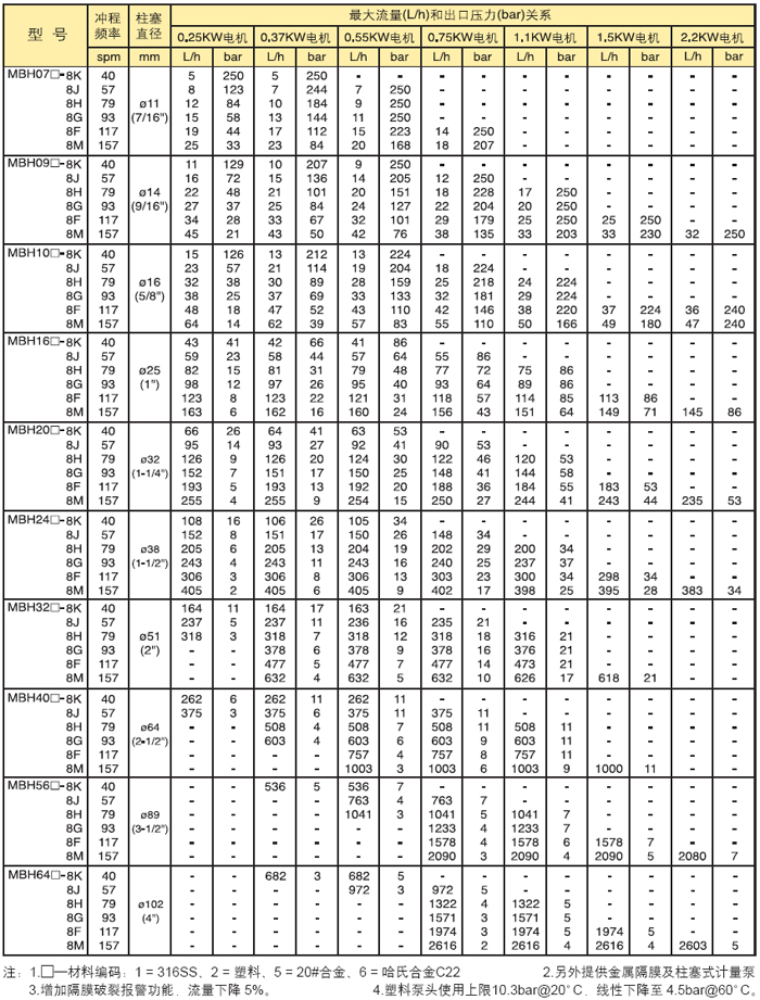 Milroyal ϵÁиßÐÔÄÜҺѹ¸ôĤ¼ÆÁ¿±ÃÁ÷Á¿/ѹÁ¦²ÎÊý±í |