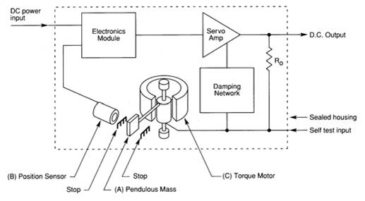 ËÅ·þÇã½ÇÒÇÓɷǽӴ¥Î»ÒÆ´«¸ÐÆ÷¡¢Á¦¾ØÂí´ï¡¢Îó²î¡¢·´À¡µç·ºÍÐü±ÛÖÊÁ¿¿é×é³É¡£µ±Õû¸ö´«¸ÐÆ÷·¢ÉúÇãбʱ£¬Ðü±ÛÖÊÁ¿¿é±ãÀ뿪ÔÀ´µÄƽºâλÖ㬷ǽӴ¥Î»ÒÆ´«¸ÐÆ÷¼ì²â³ö¸Ã±ä»¯ºó£¬½«Î»ÖÃÐźÅËÍÈëÎó²îºÍ·Å´óµç·£¬Ò»·½Ãæ´«¸ÐÆ÷Êä³öÓëÇã½Ç³ÉÒ»¶¨±ÈÀýµÄÄ£ÄâÐźţ»ÁíÒ»·½Ã棬¸ÃÐźž·´À¡µç·ËÍÈëÁ¦¾ØÂí´ïµÄÏßȦ¡£´Ëʱ£¬Á¦¾ØÂí´ï»á²úÉúÒ»¸öÓëÐü±ÛÖÊÁ¿¿éÔ˶¯·½ÏòÏà·´¡¢´óСÏàµÈµÄÁ¦¾Ø£¬Á¦Í¼Ê¹Ðü±ÛÖÊÁ¿¿é»Øµ½ÔÀ´µÄƽºâλÖá£ÕâÑù¾¹ýÒ»¶¨Ê±¼äºó£¬Ðü±ÛÖÊÁ¿¿é¾ÍÍ£ÁôÔÚÒ»¸öÐÂµÄÆ½ºâλÖá£Õâʱ£¬´«¸ÐÆ÷Êä³öµÄÐźŲÅÊÇÕæÕýÓÐЧµÄÐźš£¸ÃÊä³öÐźÅÒ»°ãΪֱÁ÷µçѹÐźţ¬Êä³öµçѹÓëÓöÈÀ´±íʾµÄ½Ç¶ÈÖµ³ÉÕýÏÒ¹ØÏµ¡£
