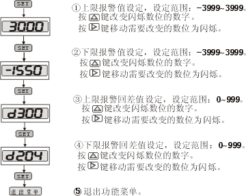 ÉÏÏÂÏÞ±¨¾¯¼ÌµçÆ÷Êä³ö ÉÏÏÂÏÞ±¨¾¯ÖµµÄÉ趨·¶Î§£º-3999¡×3999£¬ÉÏÏÂÏÞ±¨¾¯»Ø²îÖµµÄÉ趨·¶Î§£º0¡×999 |
