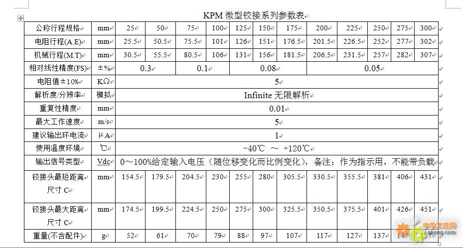ÓÐЧÐгÌ10mm¡«300mm£¬Á½¶Ë¾ùÓÐ2mm»º³åÐг̣¬¾«¶È0.5%¡«0.08%FS¡£Íâ