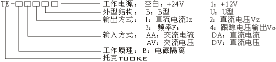 ×¢Ò⣺ 1¡¢¶¨»õÐͺÅÓ¦°üÀ¨£º±äËÍÆ÷Ö÷Ðͺš¢ÊäÈë/Êä³ö¹æ¸ñ£¨ÊäÈë/Êä³ö·¶Î§Öµ£©¡¢¾«¶ÈµÈ¼¶µÈ¡£ÀýÈ磺TE- BAA1U-5A/4¡«20mA-0.5¡£
