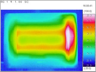 ¹âÔ´°ëµ¼ÌåоƬ·¢ÈȵĺìÍâÈÈͼ£¬¿É·ÖÎö³öÆäоƬÔÚ¹¤×÷ʱµÄζȣ¬ÒÔ¼°Î¶ȵķֲ¼Çé¿ö£¬ÔÚ´Ë»ù´¡£¬´ïµ½Ìá¸ßLED²úÆ·ÊÙÃüµÄÄ¿µÄ¡£