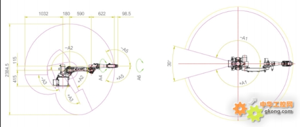 ¹Ø½Ú·¶Î§Max Operaton Area£º J1 ( ±165°£©J2 ( +65° -- 180°£© J3£¨+160°--110°£©