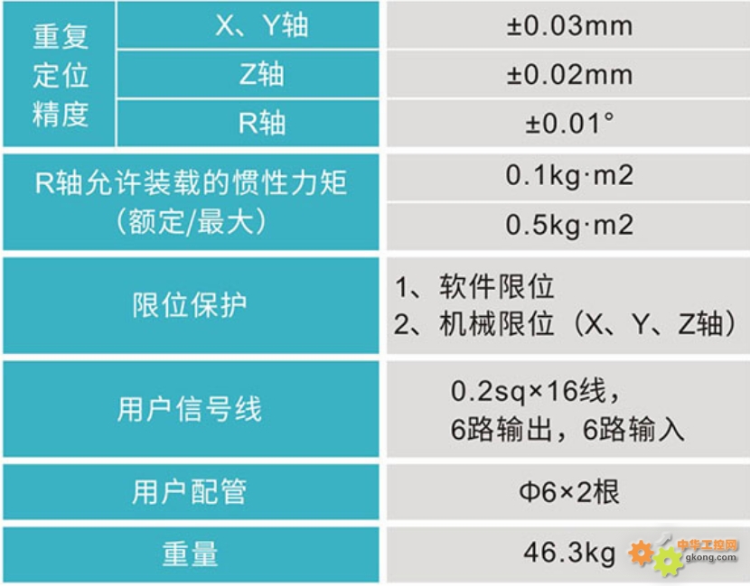 ÖØ¸´¶¨Î»¾«×¼£¨X.YÖá ±0.03mm£©£¨Z Öá ±0.02mm£©£¨R Öá ±0.01°£©