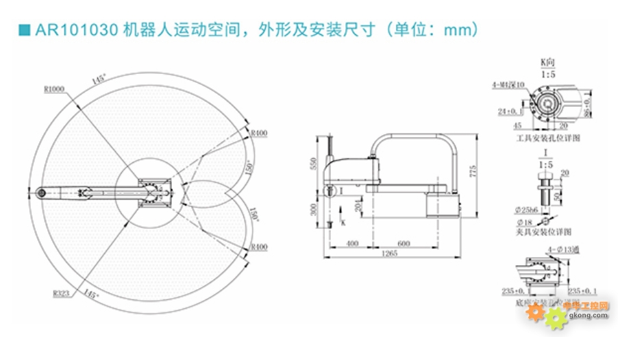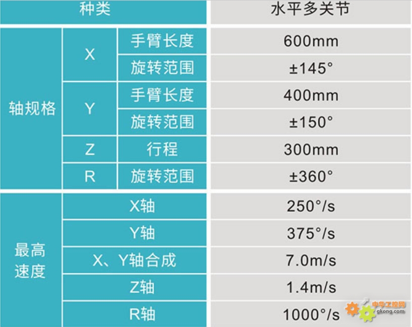 Öá¹æ¸ñ£¨XÖ᣺ÊÖ±Û³¤¶È600mm£¬Ðýת·¶Î§ ±145°£©£¨YÖ᣺ÊÖ±Û³¤¶È400mm£¬Ðýת·¶Î§ ±150°£©£¨ZÖ᣺ÐÐ³Ì 300mm£©£¨RÖ᣺Ðýת·¶Î§ ±360°£©