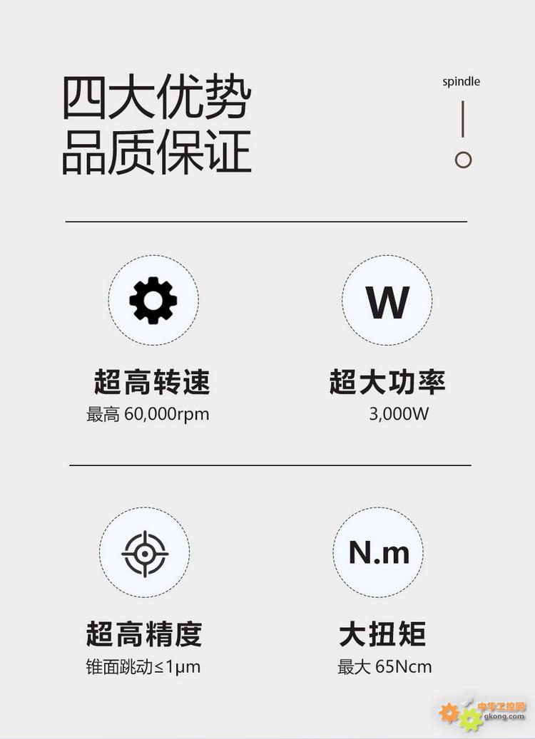 ¡¡¡¡¶¯Á¦ÐÔÄÜ£º²ÉÓÃÎÞˢͬ²½¸ßËÙµç»ú£¬×î´ó¹¦ÂÊ´ï3000W£¬×î´óŤ¾ØÎª65Ncm£¬ÄÜÓ¦¶ÔîѺϽðµÈÄѼӹ¤²ÄÁϵÄÇÐÏ÷ÐèÇó;תËÙ·¶Î§¸²¸Ç6000-60,000min⁻¹£¬ÊÊÅ䲻ͬ¼Ó¹¤³¡¾°ÏµÄתËÙµ÷½ÚÐèÇó£¬ÊÊÅ䯵ÂÊΪ100-1,000Hz£¬¶î¶¨µçѹ230V£¬×î´óµçÁ÷12A¡£
