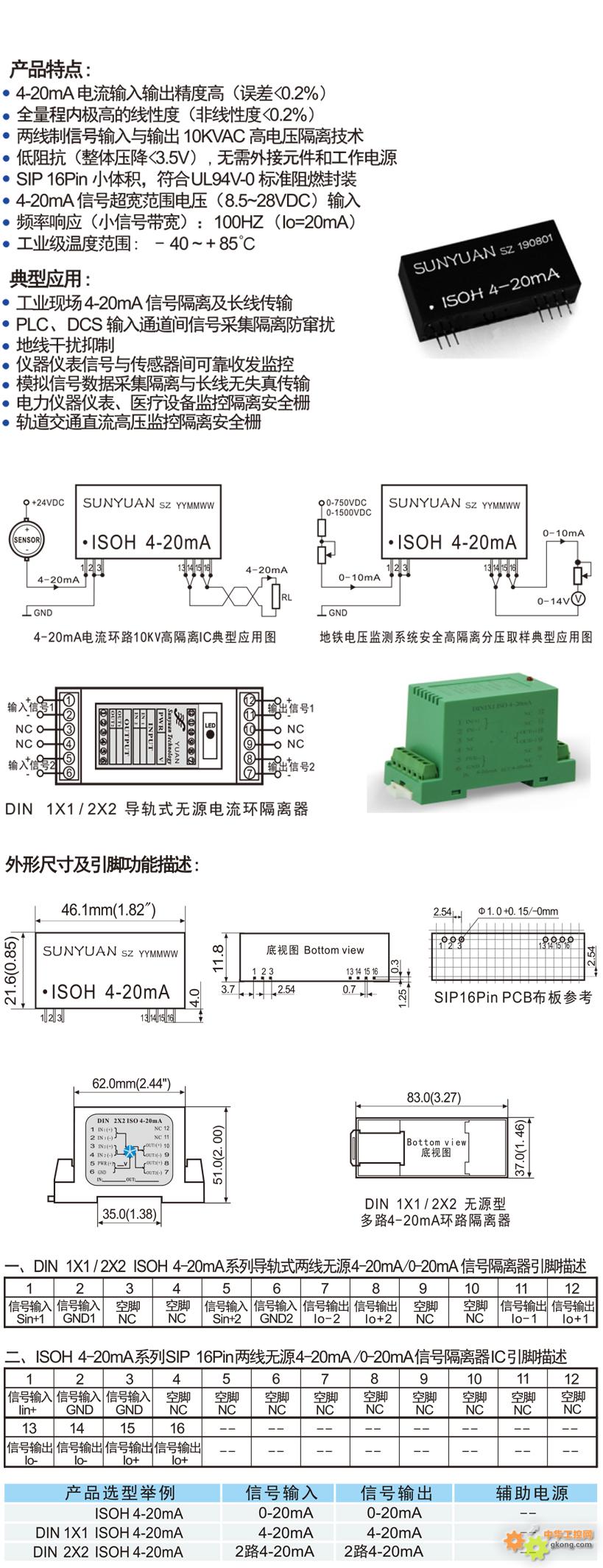 SunYuan Á½ÏßÖÆÎÞÔ´ÐÍ4-2OmA£¨0-20mA£©µçÁ÷»·Â·¸ôÀëÄ£¿é·Ö±ðÓУºISOS 4-20mA£¨SiP 7½Å£¬1KV¸ôÀ룩/ ISO 4-20mA £¨SIP 12½Å£¬3KV¸ôÀ룩/ISOH 4-20mA£¨SIP 16½Å£¬10KV¸ôÀ룩ÈýÖÖIC·â×°£¬ÊÇÒ»ÖÖǰ¼¶4-20mAµçÁ÷ÐźÅÊäÈ룬ºó¼¶4-20mAÊä³öµÄÎÞÔ´ÐÍÄ£ÄâÐźŸôÀë»ìºÏ¼¯³Éµç ·¡£¸Ã¼¯³ÉÄ£¿éÄÚ²¿°üº¬ÓеçÁ÷Ðźŵ÷ÖÆ½âµ÷µç·¡¢ÐźÅñîºÏ¸ôÀë±ä»»µç·µÈ¡£²úÆ·²ÉÓöÀÓеÄ˳Դ¿Æ¼¼´Åµçñî ºÏ¸ôÀë¼°¸ßЧÄÜ»ØÂ·ÇԵ緢Ã÷רÀû¼¼Êõ£¬ÓÐЧ½â¾öÁ˵çÁ÷ÐźŸôÀë¶Ô¹©µçµçÔ´µÄÒÀÀµÎÊÌ⣬ʵÏÖ¹¤ÒµÏÖ³¡´«¸ÐÆ÷ ÓëÒÇÆ÷ÒÇ±í¡¢PLC¡¢DCSÖ®¼ä4-20mA£¨0-20mA£©Ðźŵĸ߾«¶È¡¢¸ßÏßÐԶȵĸôÀë´«Êä¡£12½Åµ¥ÁÐÖ±²åµÄ³¬Ð¡Ìå»ý ±ê×¼PCB°åÉϰ²×°Éè¼Æ£¬·Ö²¼Ç¶ÈëÔÚÒÇÆ÷ÒÇ±í¡¢´«¸ÐÆ÷¡¢PLCµÈ²Ù×÷¿ØÖưåÄÚ²¿£¬ÓÐЧ¼ò»¯Óû§ÏµÍ³Éè¼Æ·½°¸Ñ¡Ôñ£¬½µµÍÌå»ýºÍ²¼Ï߳ɱ¾¡£
