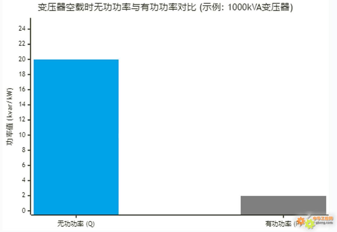 下图以一台典型的1000kVA配电变压器为例(空载电流2%,空载损耗20kar),完全空载的话,功率因数最低可能会到0.1左右。