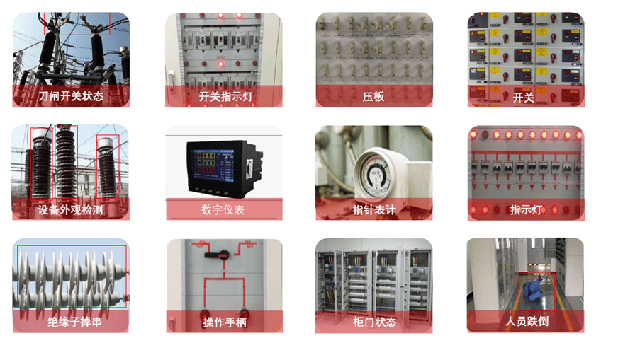 AI巡检机器人视频识别是核心功能之一,通过机器人自身携带的可见光摄像机,完成视频图像的数据采集,通过自主开发的高精度图像识别算法,对视频数据进行智能分析处理,识别视频内容。目前,视频识别功能能够准确识别室内的仪表、压板、开关、指示灯、设备外观等多种表计,并能进行表计自动读数,从而全面掌握站内电力设备及环境的状态信息。