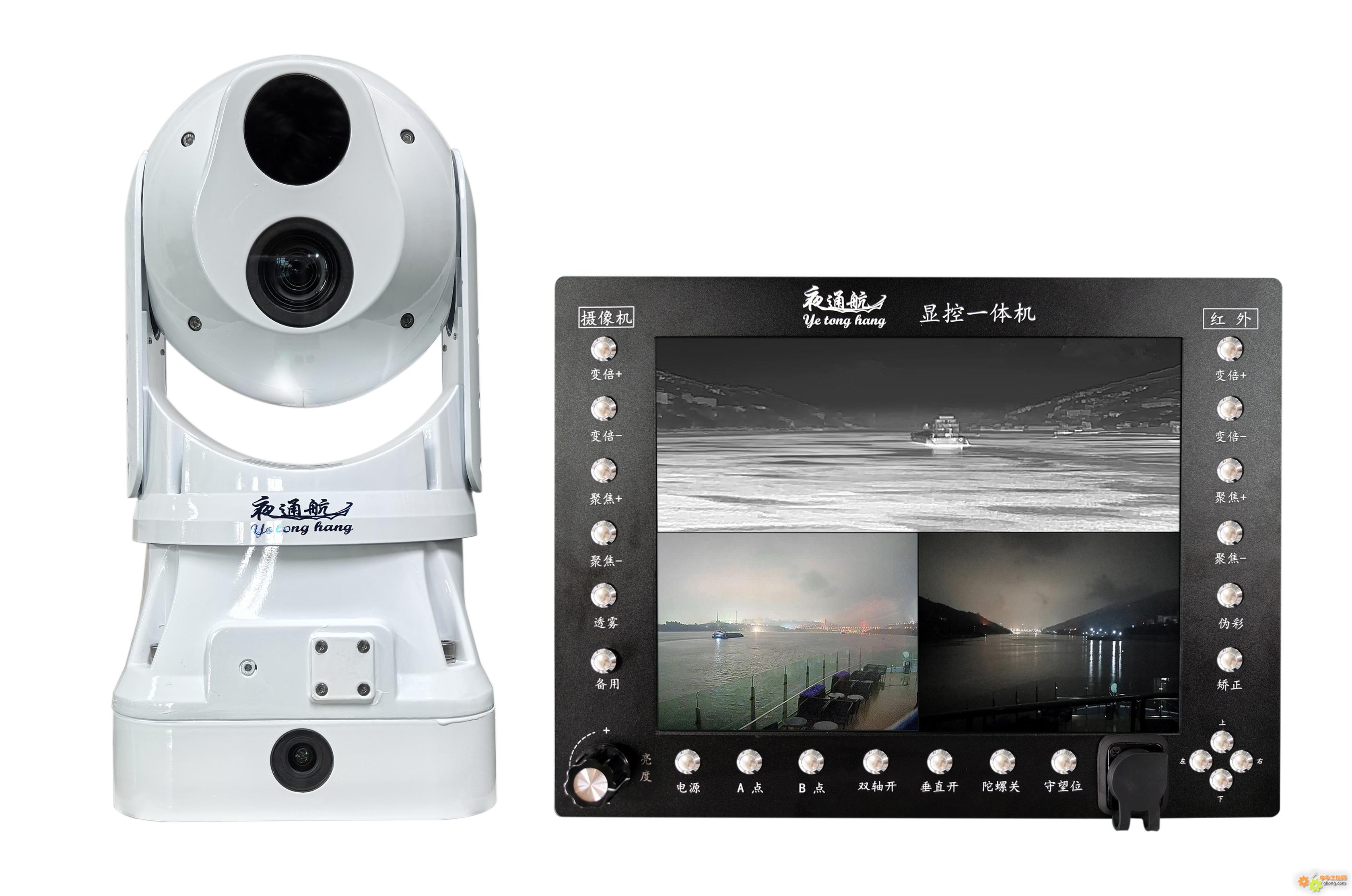 “夜通航”船用夜视仪YTH636DW20,集高灵敏度红外探测器、红外锗镜头、20倍高清微光摄像机、600万高清微光摄像机、陀螺稳像模块、球形护罩、匀速云台等于一体