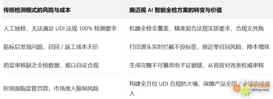 奥迈视医疗器械 UDI 标签 AI 智能检测方案,不止是一套检测设备,更是企业风险管控体系中不可或缺的合规保险,是医疗器械企业布局全球化市场、筑牢质量根基的战略性投资。相比一次潜在召回、一笔巨额罚款带来的毁灭性损失,本方案以高性价比的投入,为企业实现 100% UDI 审核通过、零合规风险、零质量隐患的核心目标。