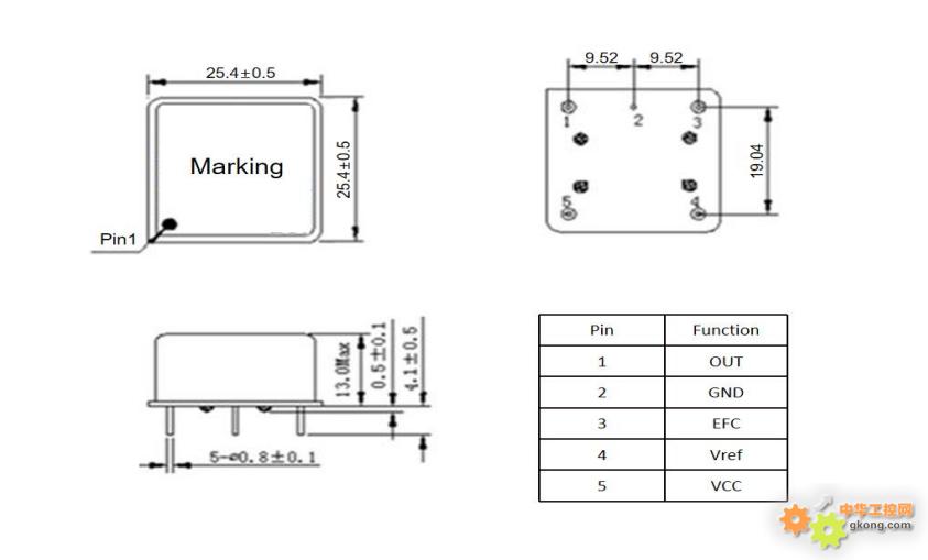 了解其管脚定义是正确应用这类器件的基础,如图是OCXO的封装与管脚位置。