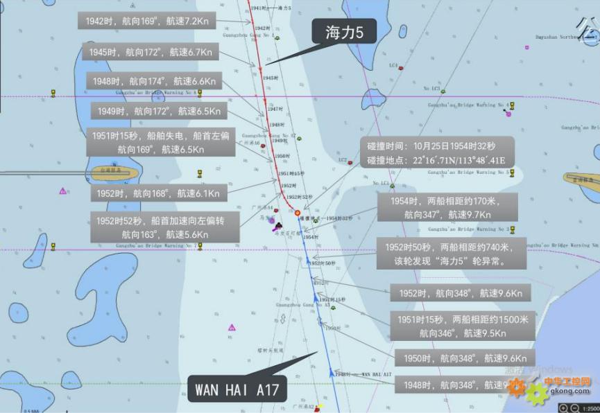 “海力5”散货船失电失控,“WAN HAI A17”集装箱船未及时避让
