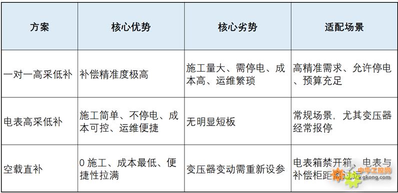 优势:实现 “0 施工、免接线、不停电”,施工周期近乎为 0;仅需一台控制器,材料成本最低,运维仅需维护设备与软件参数;补偿精准度与方案 2 持平,满足绝大多数场景需求。