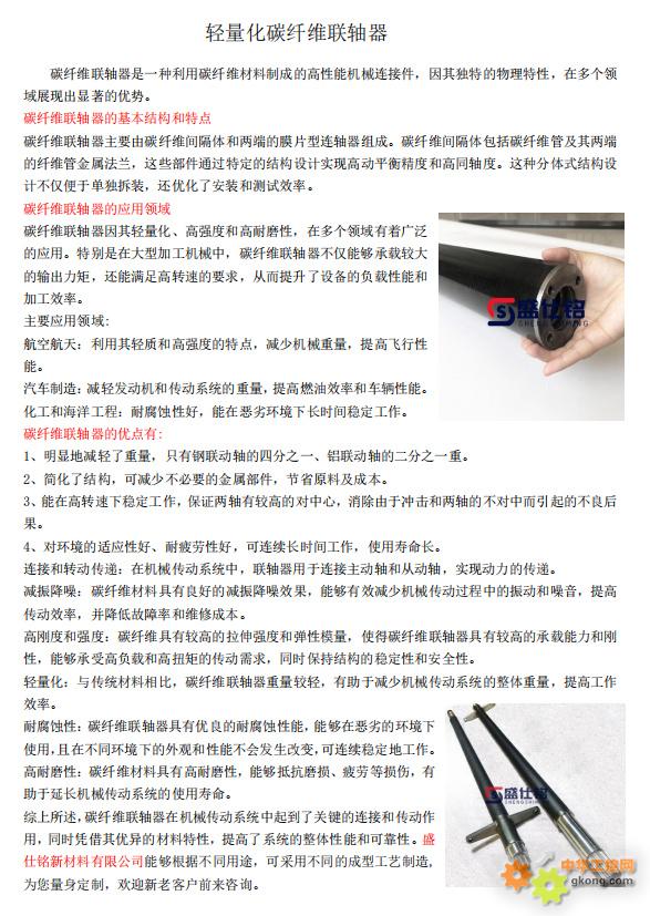 碳纤维联轴器是一种利用碳纤维材料制成的高性能机械连接件,因其独特的物理特性,在多个领域展现出显著的优势。