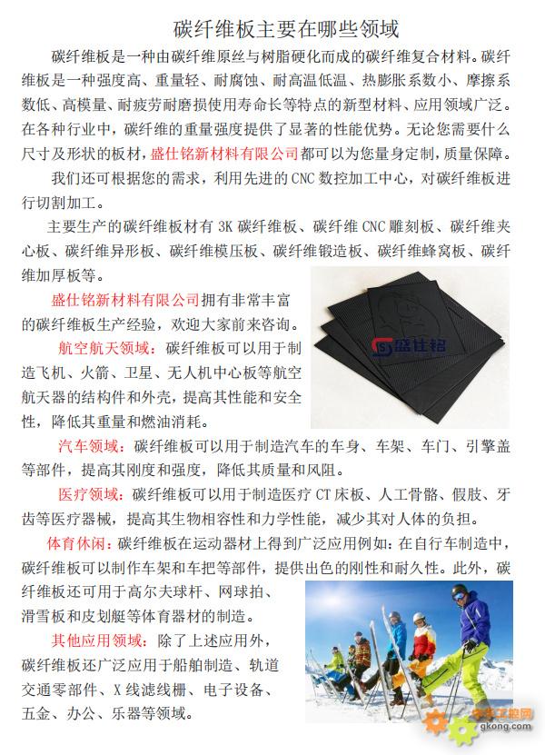 碳纤维板是一种由碳纤维原丝与树脂硬化而成的碳纤维复合材料。碳纤维板是一种强度高、重量轻、耐腐蚀、耐高温低温、热膨胀系数小、摩擦系数低、高模量、耐疲劳耐磨损使用寿命长等特点的新型材料、应用领域广泛。在各种行业中,碳纤维的重量强度提供了显著的性能优势。无论您需要什么尺寸及形状的板材,盛仕铭新材料有限公司都可以为您量身定制,质量保障。