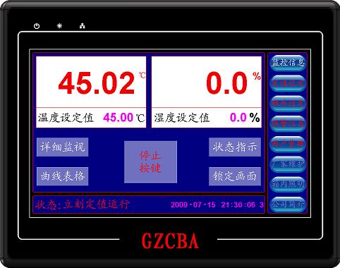 通过PC机专用软件编制试验程序并保存到优盘,再从优盘将试验程序调出并存入控制器中;也可将控制器内的程序转存到优盘,再存入PC机进行分析和管理,可将存贮在控制器内记录的试验曲线数据转存到优盘上。通过PC机专用软件直接显示试验数据或将记录数据转换为可由Microsoft Office读取的Excel数据文件并打印出来。控制器记录的试验曲线数据:2路温度---设定温度和实测温度:2路湿度一设定湿度和实测湿度;记录时刻的日期、时间。 |