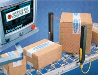 图一、图二中邦纳EZ-ARRAY 两片式测量光幕安装于机场的物流工作站上,测量所经过光幕扫描区域货物的大小,光幕的高度可以从143mm到1.8m,检测范围400mm~4m,光束间距为19.1mm,检测距离为0.9m到15m;其直接工作方式时的扫描时间范围在2.8ms到26.5ms之间。无需特别控制器,MINI-ARRAY测量光幕可迅速快捷的测量于货物的大小,后台PCL系统根据光幕检测的数据从而进行分类分拣货物。当处理货物的种类繁杂,规格尺寸千差万别,从一个小的快件到一个大型的1 3.6吨的集装单元处理箱,从一个电子产品到一辆豪华轿车,从一件服装到一箱军火枪支,这些都是货运处理工作站须考虑到的问题,测量光幕可有效的帮助处理这些问题。