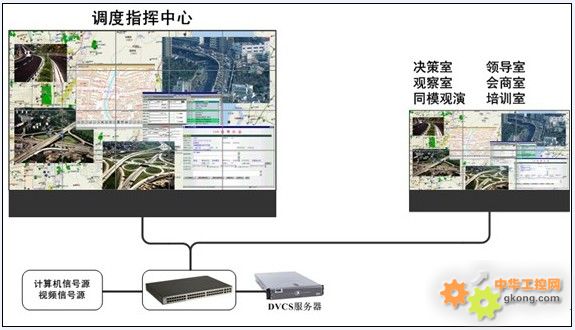 DVCS系统是一种基于以太网的视频交换系统,具有优越的网络连接性能。多个DVCS系统可借助专网交换连接,使多个显示系统之间共享相同的信号源,实现异地调用显示,为应急指挥等行业提供领先的解决方案。