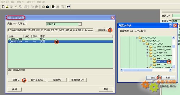 从网上或供应商处得到GSD文件,在选择项中选择GSD文件存放目录,在中间栏中就会显示可以安装的文件,选择对应的文件进行安装。