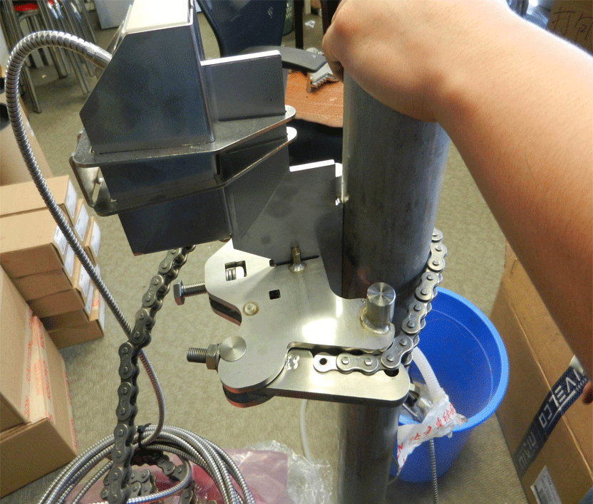 近期FLEXIM超声波流量计便携式F601在河南骏化集团生产三聚氰胺的工艺中成功用来测量熔盐的流量,现场管道外径为530mm ,壁厚8mm 碳钢,介质为熔盐,380℃。我们借助这种高温导波器将常规探头温度提高,可连续工作在400℃的高温下,金属导波板将其探头的信号近乎无衰减地传递给管壁,同时,导波板的冷却效应使得探头表面和管壁表面之间产生一个温差,确保探头温度不超过工作温度.另外为了保证精度,得到良好的测量数据,外夹式超声波流量计现场安装必须要注意: 1.上下游有必要的直管段 2.测量液体时安装位置必须充满液体. 3.剥净安装管内保温层和保护层,并将探头的壁面打磨干净 4.对于垂直设置的管道,若为单声道时差法,探头应尽可能装在上游弯道的弯轴平面内,以获得弯管流畅畸变后较接近的平均值. 5.探头表面和管壁之间保持有足够的耦合剂,不能有空气和固体颗粒,以保证耦合良好.