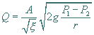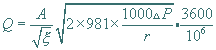 (2) | 这就是调节阀的流量方程,推导中代号及单位为:V1、V2 —— 节流前后速度; V —— 平均流速; P1 、P2 —— 节流前后压力,100KPa; A —— 节流面积,cm ; Q —— 流量,cm /S; ξ—— 阻力系数; r —— 重度,Kgf/cm ; g —— 加速度,g = 981cm/s ; 如果将上述Q、P1、P2 、r采用工程单位,即:Q ——m / h;P1 、P2 —— 100KPa; r——gf/cm 。于是公式(2)变为: