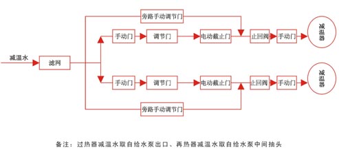 过热器汽温通过两级喷水来控制。再热器汽温采用尾部挡板方式调节。汽包水位的控制采用汽泵和电泵转速控制给水流量
