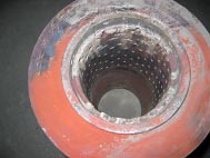 2.3处理捞渣机,破坏水封后对调节阀的影响 由于锅炉结焦问题没有得到彻底解决,大量的焦块脱落,对捞渣机造成严重的冲击,捞渣机链条、刮板及滚轮出现问题时,需要降负荷破坏捞渣机水封进行处理,水封破坏后,大量的冷风进入炉膛,锅炉副压波动严重,造成火焰中心的偏移,过热器管屏热偏差大,超温严重,为防止超温对屏过出口联箱管座形成大的热应力冲击,需要增大过热器一级减温水量,维持过热器二级减温水小流量,同时为了避免停汽泵开电泵,浪费厂用电,采用节流锅炉侧的给水主闸板门,提高减温水母管压力;利用汽机侧给水泵最小流量调节门和锅炉侧的给水旁路调节门进行汽包水位的调节,这样就例似于锅炉投产初期运行方式,对给水泵最小流量调节门和给水主闸板门形成损坏。(最小流量调节门阀笼、阀芯损坏情况图片见图4)