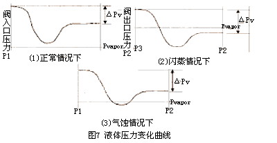 正常情况下,作为液体状态的介质,流入、流经、流出调节阀时均保持液态。其压力变化曲线如图7中的(1)所示。