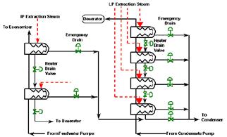 工况情况:饱和水,加热器之间的控制阀压差一般为6-30公斤,最后一级疏水阀直接连接冷凝器或除氧器。阀门要求:抗闪蒸冲刷,V或VI级密封等级,阀门通常为故障开