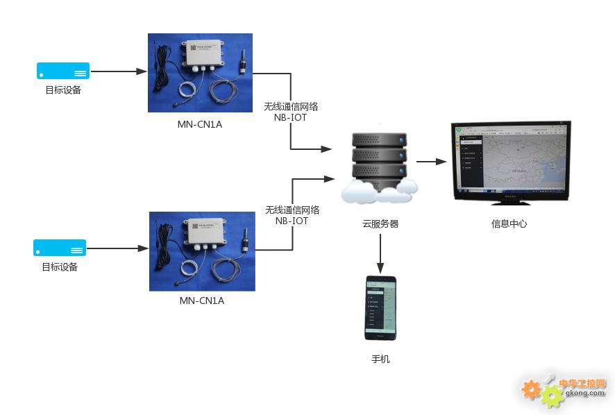 一、系统架构。用户(供暖管道)的温度利用传感器和MN-CN1A数据采集器,进行采集和处理,通过无线通信网络(NB-IOT或LoRa),上传到云服务器。供热企业可以在信息中心或手机进行查询、监控、管理等操作,科学地控制用户的供热效果。系统结构图如下: