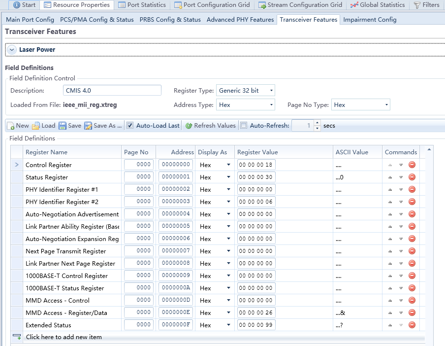 每条LANE的误码统计、FEC BER、Link Training、Inject Errors