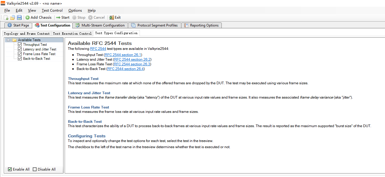 遵循RFC2544进行报告数据生成,验证多个字节长度的转发性能(吞吐量,延迟,丢包率等信息)
