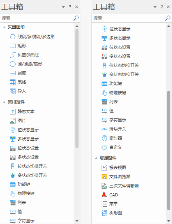 用户可结合程序逻辑与工艺流程,在各窗口中灵活添加元件,并进行参数化配置,支持用户导入自定义图形资源,实现专属界面样式与布局设计。