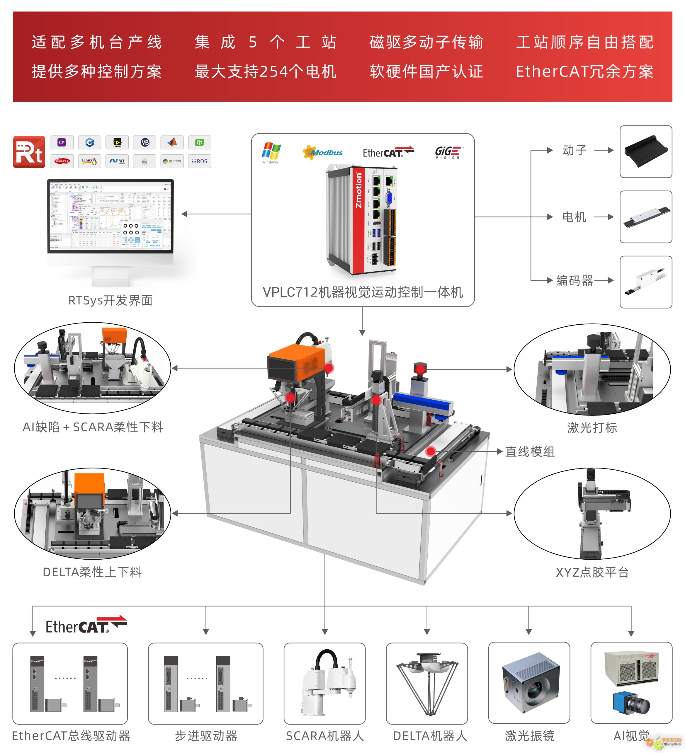 提供一体化开放式IPC形态的实时软控制器/软PLC集成的视觉+运动控制解决方案。