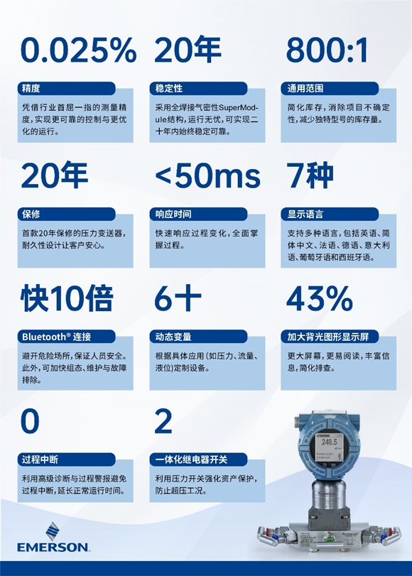 艾默生即日起推出全新罗斯蒙特™ 4051S压力变送器,其结构更坚固,性能更卓越,可助您实现更多价值——更深入的洞察、更出色的性能、更高的测量精度、更强的可靠性与更大的信心,让您对运营掌控自如。