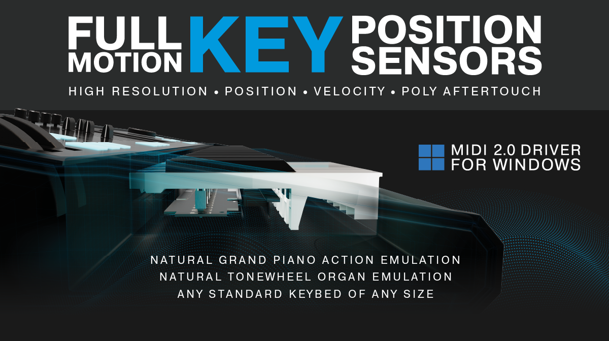 基于其在游戏键盘等领域内的丰富的经验和成功案例,Azoteq当时也正在开发感应琴键传感技术,得益于Azoteq和Amenote团队之间的紧密合作,双方随后成功开发并向MIDI 2.0大奖组委会提交了一款配备齐全的61琴键合成器键盘。