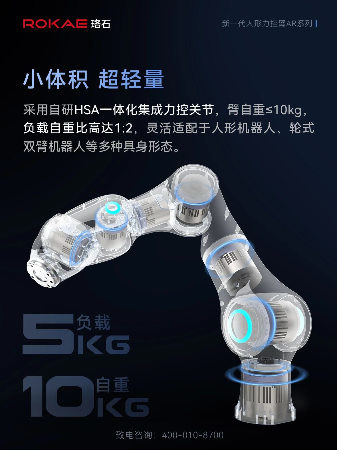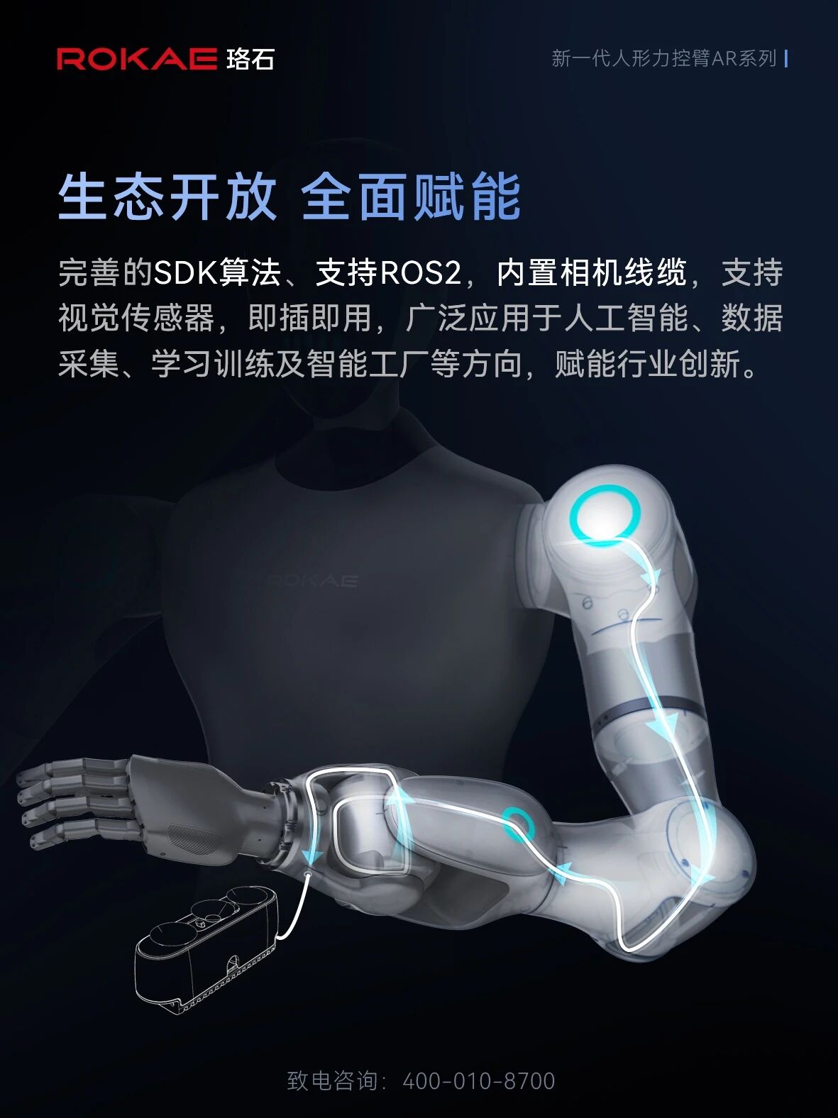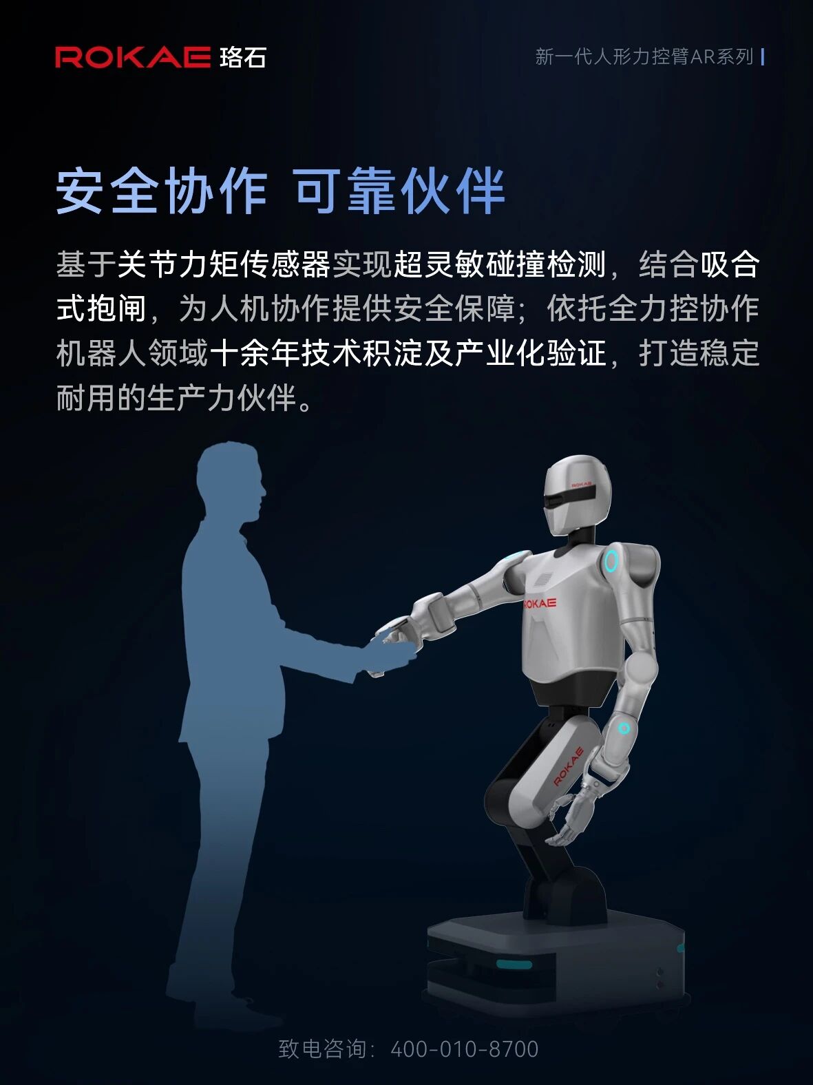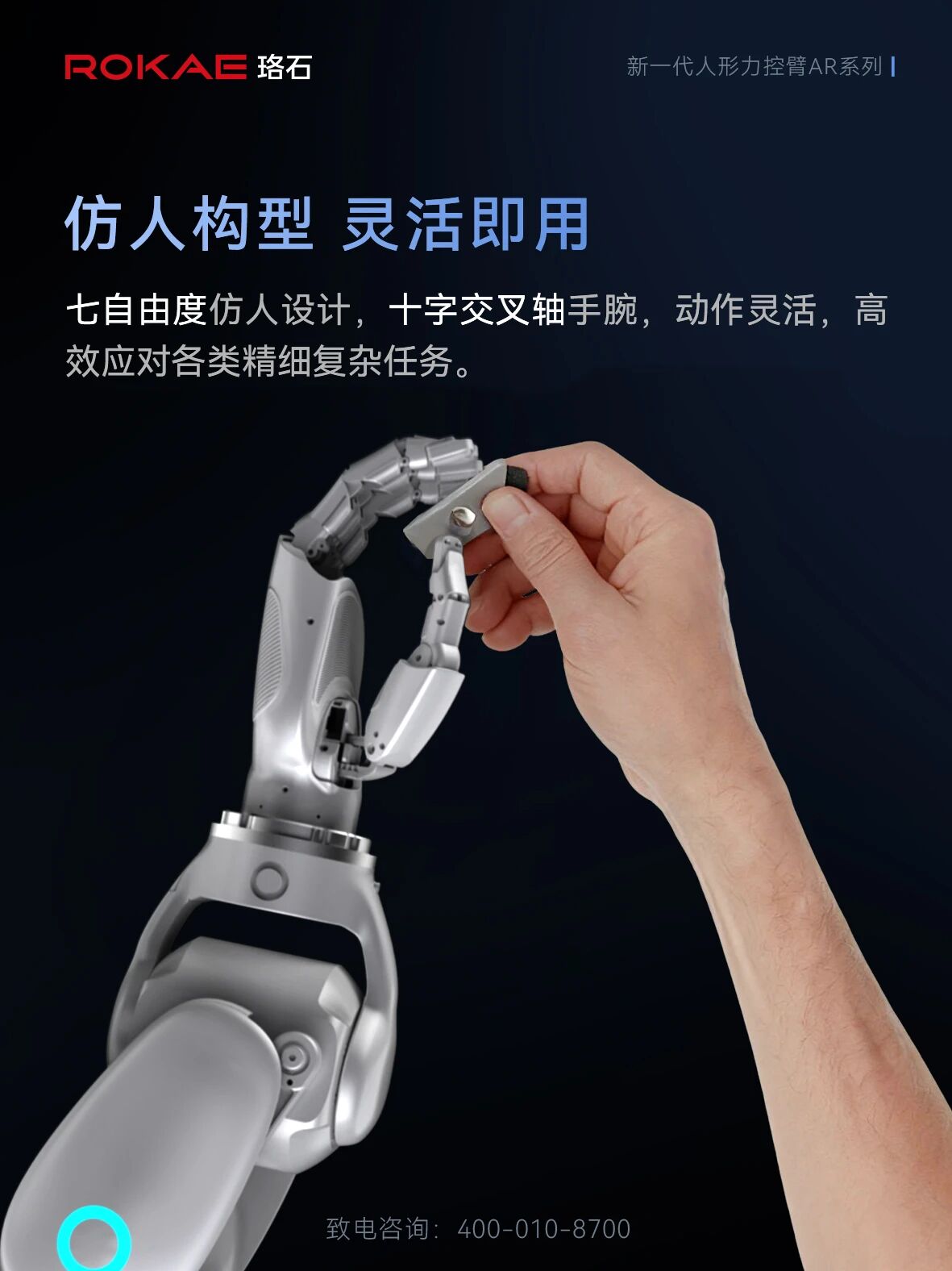 依托珞石全球销量领先的全力控协作机器人产品基础,AR人形力控臂自诞生起就自带“高可靠、可量产”的基因,可灵活适配于人形机器人、轮式双臂机器人等多种具身形态,广泛赋能人工智能、数据采集、学习训练及智能工厂等场景。