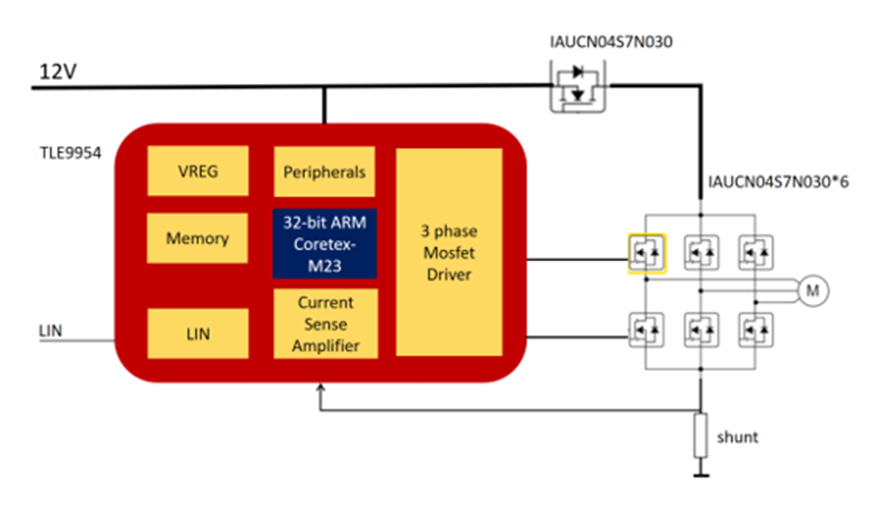 凭借TLE9954的“全集成”特性,方案不仅有效解决高精度电机控制在安全、效率与电磁兼容性方面的核心难点,更大幅降低了系统复杂性与开发门槛,是驱动12V系统内高效、可靠电机应用的理想选择。