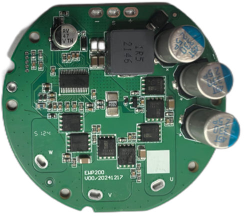 其外围电路包含电源防反及滤波、逆变电路及高精度电流检测。逆变部分采用6颗Infineon最新7代IAUCN04S7N030 MOSFET(耐压40V),确保系统在5.5V至29V宽电压范围内稳定工作,最大输出功率达200W。