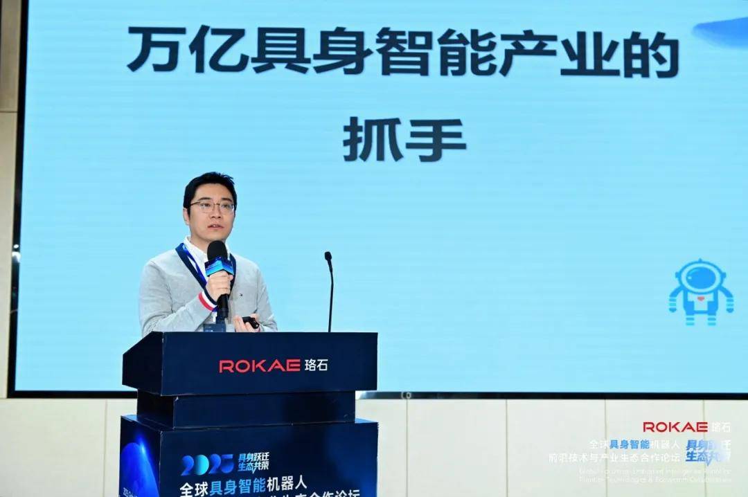 珞石机器人创始人兼CEO庹华发表致辞。他回溯珞石深耕机器人领域十载的历程,十年间,珞石既沉淀了自身的技术与产业实践,也见证了中国机器人产业从技术突破到规模化应用的关键节点。面对当前席卷全球的具身智能浪潮,他强调,技术的突破与产业的跨越式发展,离不开产业链的开放协同与价值共生。