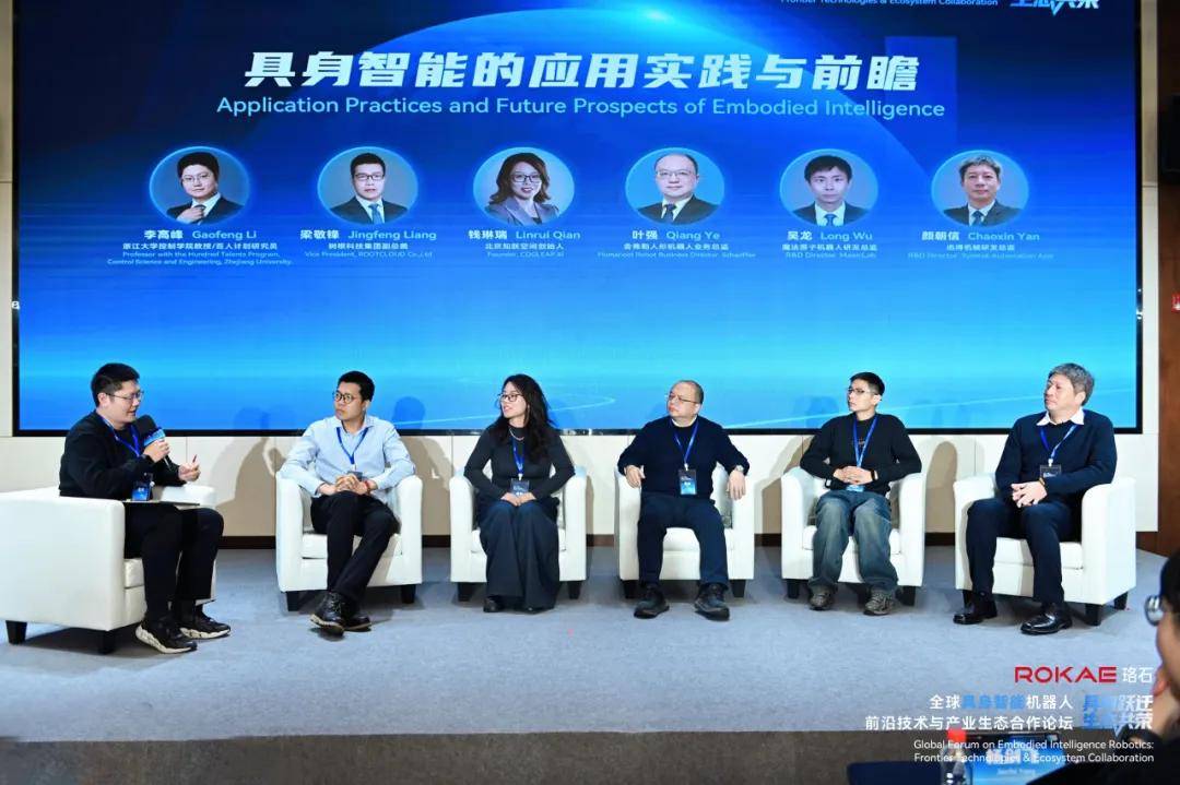在 “具身智能的应用实践与前瞻” 圆桌对话中,浙江大学控制学院教授、百人计划研究员李高峰领衔主持,树根科技集团副总裁梁敬锋,北京知跃空间创始人钱琳瑞,舍弗勒人形机器人业务总监叶强,魔法原子机器人研发总监吴龙,迅得机械研发总监颜朝信等多方权威代表齐聚。