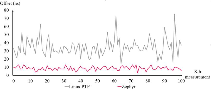图8:LinuxPTP与Zephyr RTOS时间同步对比